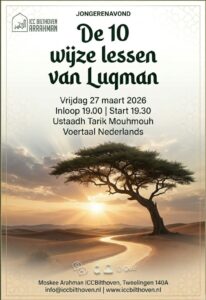 Daarom nodig wij jullie van harte uit voor een inspirerende jongerenavond met als titel De 10 wijze lessen van Luqman. Ustaadh Tarik Mouhmouh zal ons meenemen in deze krachtige wijze lessen, in shaa Allah.